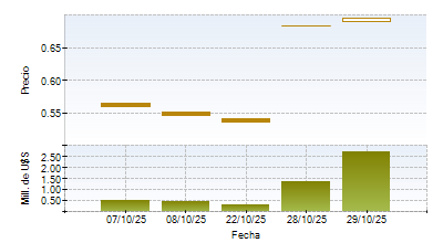 Highest price today: 0.693 Last % var / máx.: 0.00 % Development of prices by instrumentVar. B.P. últ. / máx.: 0 b.p.