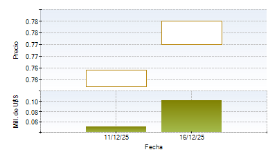 Highest price today: 0.777 Last % var / máx.: 0.00 % Development of prices by instrumentVar. B.P. últ. / máx.: 0 b.p.